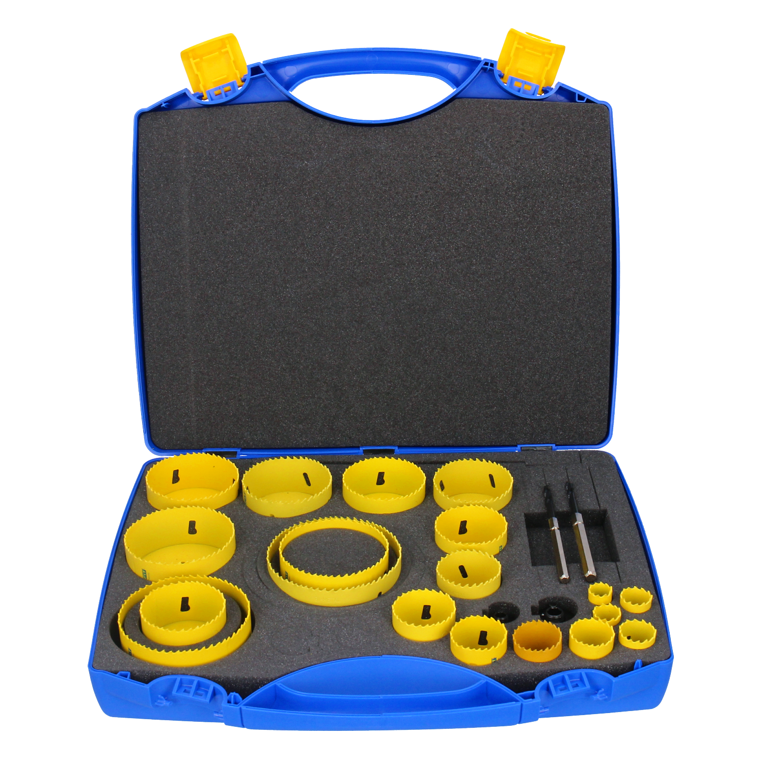 Variert kombinert sett med ulike typer hullsager - for tre, murstein (opp til hardhet 6) og stål (bimetall+). Leveres i praktisk koffert.