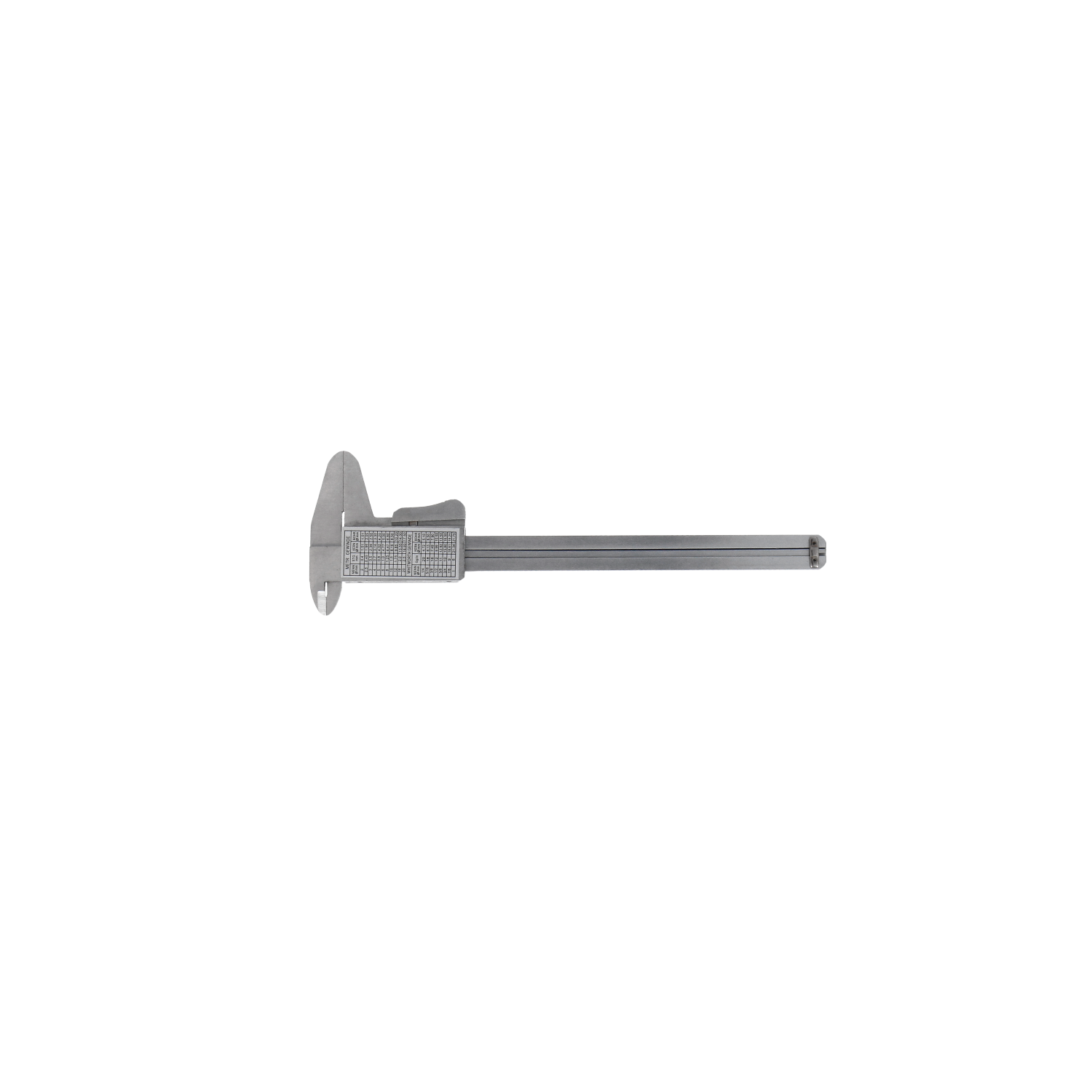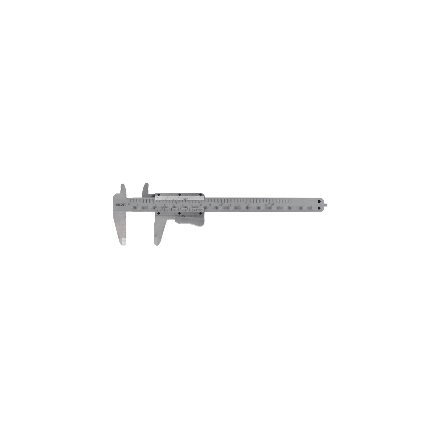 Analogt skyvelære med skruelås. For innvendig og utvendig måling samt dybdemåling.